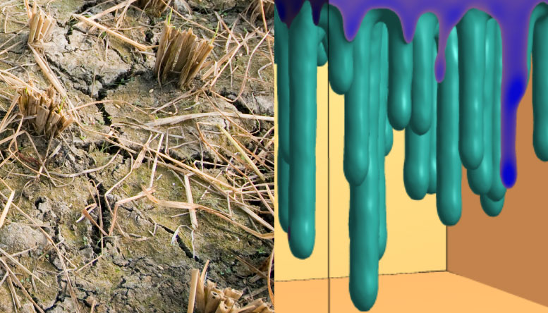 Our Research Gravity fingering during water infiltration in soil: Impact on the resilience of crops and vegetation in water-stressed ecosystems