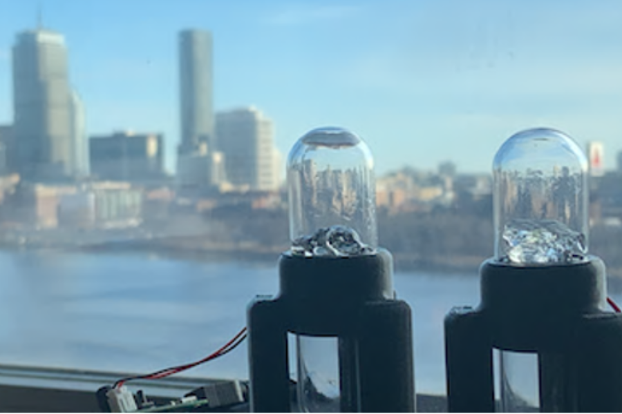 Ultrasonic atmospheric water harvester prototypes tested in Cambridge, MA. Photo credit: Ikra Shuvo.